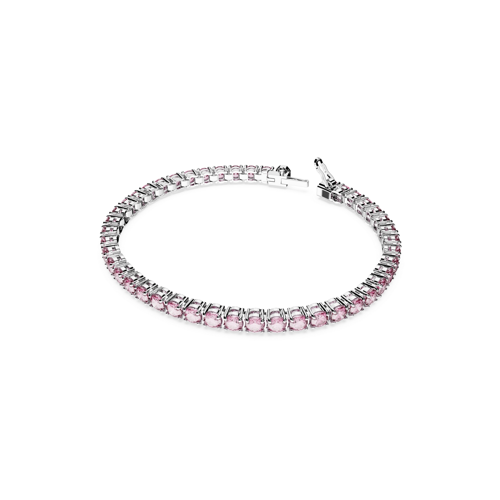 Enjoy the glimmer of rich color with this bracelet from the Matrix Tennis family. In perfectly formed fluidity, the design features a row of round purplish pink stones on a rhodium plated setting for a combination that is truly alluring. Wear it alone, or pair it with other pieces from the Matrix Tennis family.