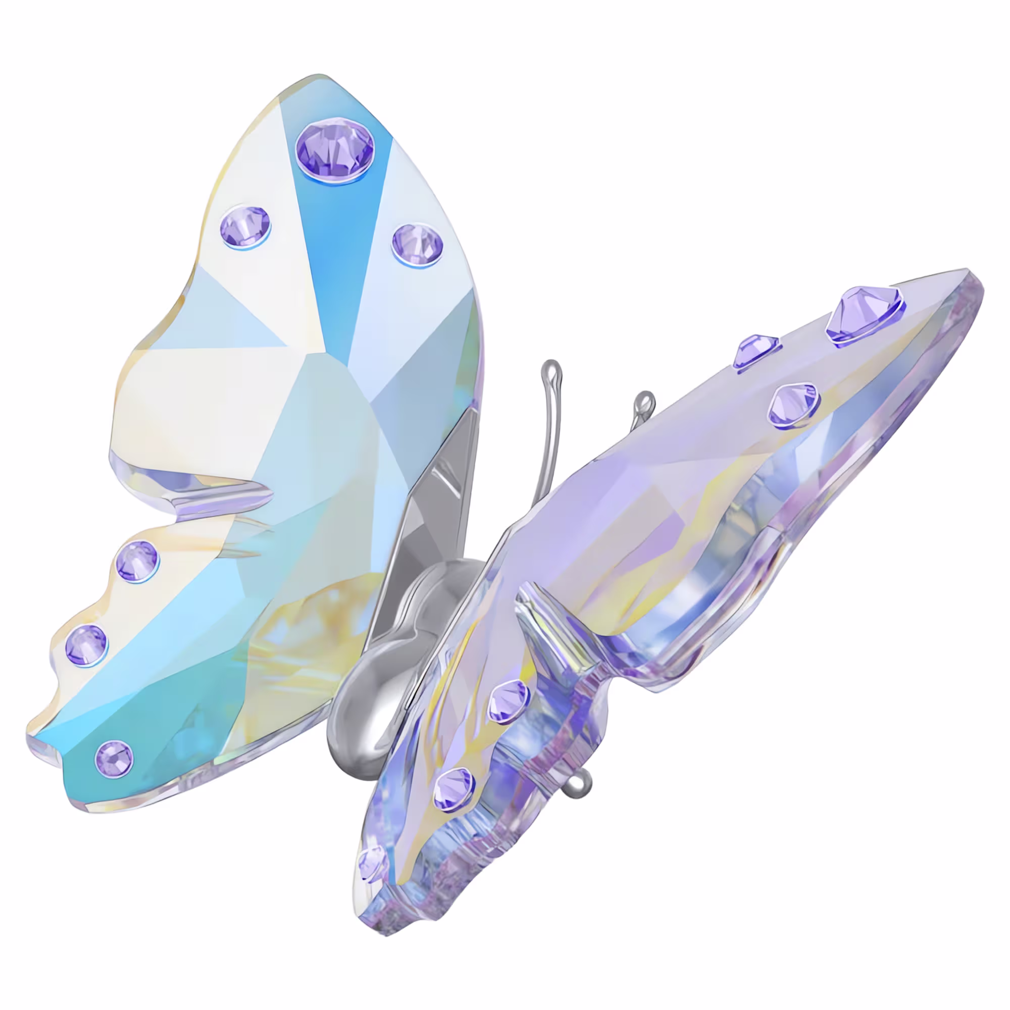 Taking flight in a world of wonder, this bright and delicate butterfly is crafted with 282 facets and features a silver-tone plated metal body with crystallized wings in the Aurora Boreale effect. Additional lavender dots heighten the beauty of this decorative piece, which is ideal for giving your interior space a radiant touch of nature.