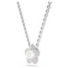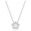 In a gentle tribute to nature, this rhodium plated pendant portrays a delicate flower, made with a crystal center and petals adorned in glittering pavé. Wear it together with the matching studs to give any look a radiant touch of understated luxury.