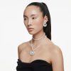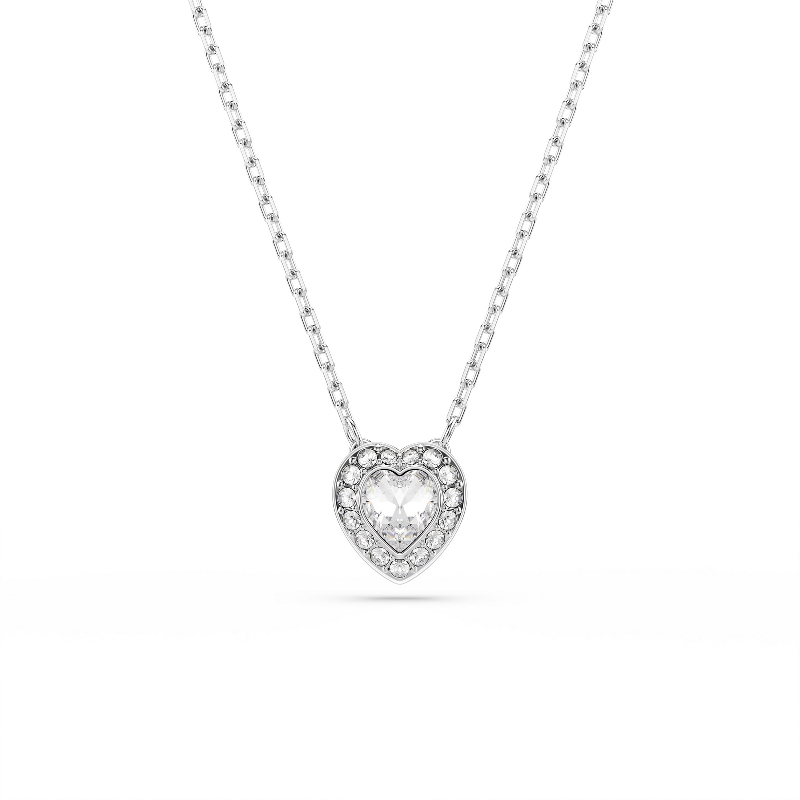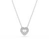 Follow your heart and let romance shine with this radiant Swarovski pendant. Suspended from a delicate chain, the rhodium plated design features a heart-shaped crystal, which is surrounded by a glittering halo of clear pavé. Pair it with the matching studs for a radiant gift of love.