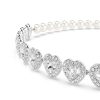 This radiant choker was made for an intense expression of love. The rhodium plated design is partly decorated with luxurious Swarovski Crystal Pearls, while at the front, there is a row of heart-shaped crystals, each surrounded by a glittering halo of clear pavé. A sliding closure at the back means you can adjust the jewelry to your perfect fit. Pair this bold necklace with other matching jewelry to create your own romantic combinations.