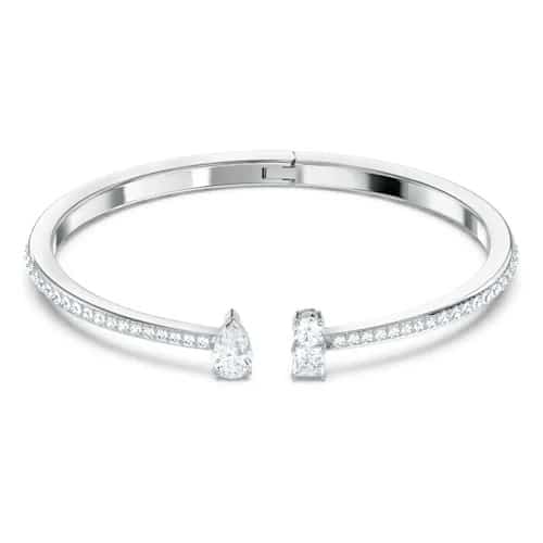 Ένα διαχρονικό look για εσάς: Αυτή η χειροπέδα από τη Swarovski είναι ένα εντυπωσιακό παράδειγμα διαχρονικού σχεδιασμού. Είναι επικαλυμμένη με λαμπυρίζοντα παβέ που δημιουργούν ζωηρές λάμψεις. Στο φινίρισμα, η χειροπέδα έχει ένα μεγαλύτερο πετράδι σε σχήμα σταγόνας, απέναντι από ένα ζευγάρι στρογγυλών και τετράγωνων πετραδιών. Ένα κλασικό look, ιδανικό για να ομορφύνει τα καθημερινά στιλ.