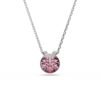 This romantic V-shape pendant has eye-catching appeal thanks to its central pink crystal set in rhodium plating. A flourish of shimmering pavé adds an extra layer of beauty, while the delicate chain exudes pure elegance. Wear it together with the matching earrings for a wondrous combination.