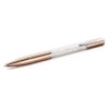 The Crystalline Lustre ballpoint pen takes inspiration from luxurious style. This distinctive writing instrument features a round barrel with a rose gold-tone plated finish, as well as chrome accents that include a functional clip engraved with the Swarovski name. At its center, this eye-catching design is illuminated with approximately 480 glittering Swarovski Crystals, each meticulously added using the iconic Crystalline technique. A standout addition to your desk or a distinctive gift for the writers in your life. Black and blue ink refills are available to buy in Swarovski stores.