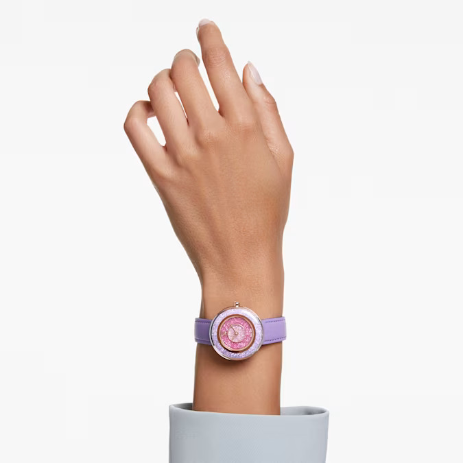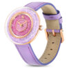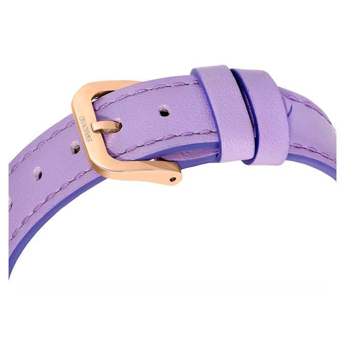 With its playful colorway, this striking watch will brighten every hour of your day. The 33mm case is made in stainless steel with radiant rose gold-tone detailing. Beneath the domed sapphire glass, the dial is enriched with around 3,460 crystals in shades of pink and violet, while the iconic Swarovski swan logo is placed at 12 o’clock. An additional crystal is also set in the watch’s crown. This Swiss made watch is water resistant to 30m and is presented on an Italian calfskin leather strap in a vivid purple shade.