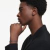 With its deep metallic tones, this Dextera bangle makes a chic statement. The slender octagonal design is ruthenium plated and accented with a row of black crystals in a refined prong setting. Style yours solo or with a matching pendant and signet ring to coordinate the sleek look.