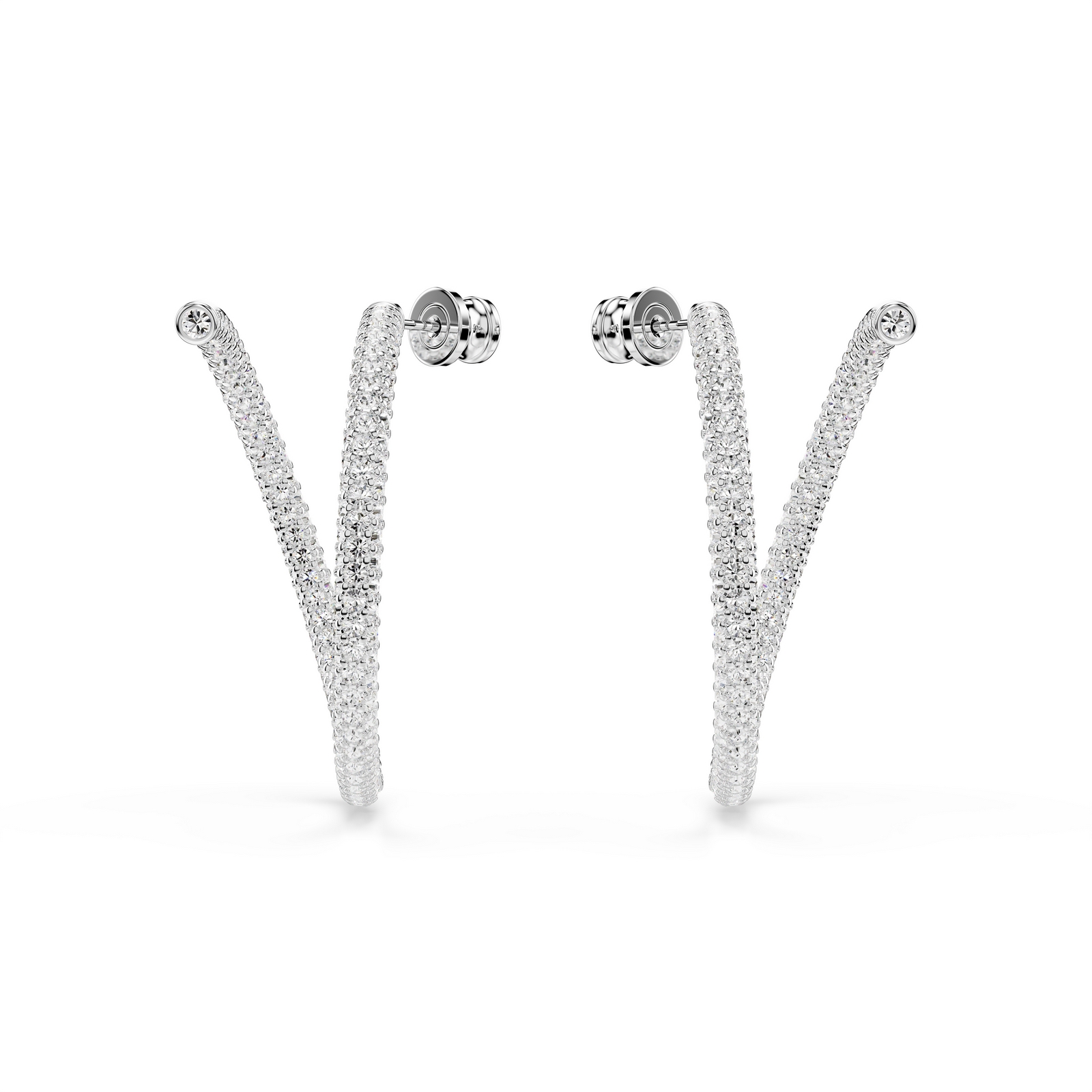 It’s the delicate touches that have the biggest impact in these pierced Dextera earrings. Each rhodium plated hoop is twisted into a sensational open silhouette, adorned with clear pavé and culminating in a single round crystal. A light-filled set that will enhance any outfit.