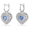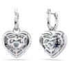 These joyful pierced earrings are a perfect way to inject your style with passion. Each rhodium-plated piece has been created with a cage design for maximum volume. To enhance the domed effect, they are adorned with round clear Swarovski Zirconia, set in place using the dazzling chatonnage technique, while at the center, a heart-shaped dancing stone in blue catches the light from every angle. Pair them with a matching pendant for all-out glamour.