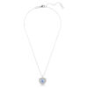 Two hearts become one in this romantic Swarovski pendant. The rhodium-plated motif has been created with a cage design for maximum volume. To enhance the domed effect, it is adorned with round clear Swarovski Zirconia, set in place using the dazzling chatonnage technique, while at the center, a heart-shaped dancing stone in blue catches the light from every angle. A perfect way to say ‘I love you’ to someone special.