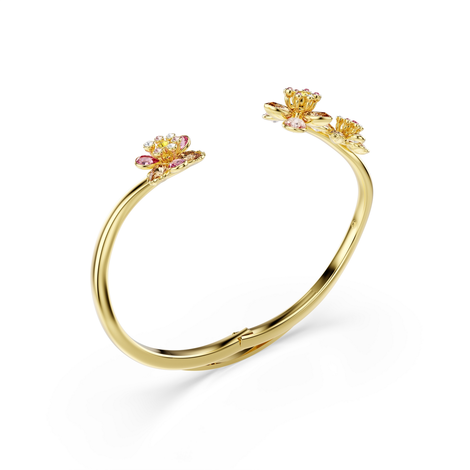Wrap your wrist in nature with this gold-tone plated bangle from the Idyllia family. Crafted with Swarovski’s finest savoir-faire, the design presents a bouquet of three flowers, each made of crystals in different cuts and soft pastel colors. A Wonderclick closure at the bottom ensures an easy fit. Wear this bangle with other matching pieces to harmonize your look.