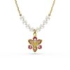 This charming pendant adds a magical and nature-filled touch to any outfit. The gold-tone plated chain features eight Swarvoski Crystal Pearls, elegantly set on either side of a single flower, which has been expertly crafted from crystals in various cuts and soft colors. The jewelry includes a lobster closure and an elongation for an adjustable fit. A wonderful gift of luxury for effortless everyday wear.