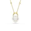 Symbolizing the secrets of love, this romantic pendant features a locket-inspired heart motif, which can be easily reversed to face two different ways. On one side, a rhodium plated surface with a single heart-shaped crystal, and on the other side, a radiant setting of Swarovski Zirconia in the chattonage style. The motif is suspended from a delicate gold-tone chain, which itself is embellished with small heart-shaped beads.