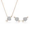 Δώστε πάθος στο στυλ σας με αυτό το αστραφτερό σετ με μενταγιόν και σκουλαρίκια. Κάθε καρδιά με επιμετάλλωση ροδίου είναι διακοσμημένη με διαφανή κρύσταλλα και διαπερνάται από το βέλος του Θεού Έρωτα σε ροζ χρυσό τόνο. Ένας μοναδικός συνδυασμός για τις ημέρες που η αγάπη αξίζει να λάμψει.