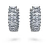 These eminently wearable mini hoops will deliver effortless elegance to your everyday style. The versatile colorway features grey baguette princess-cut stones on ruthenium plating held together with a refined prong setting. Easy to style, these earrings will become your go-to piece of jewelry.