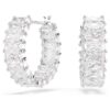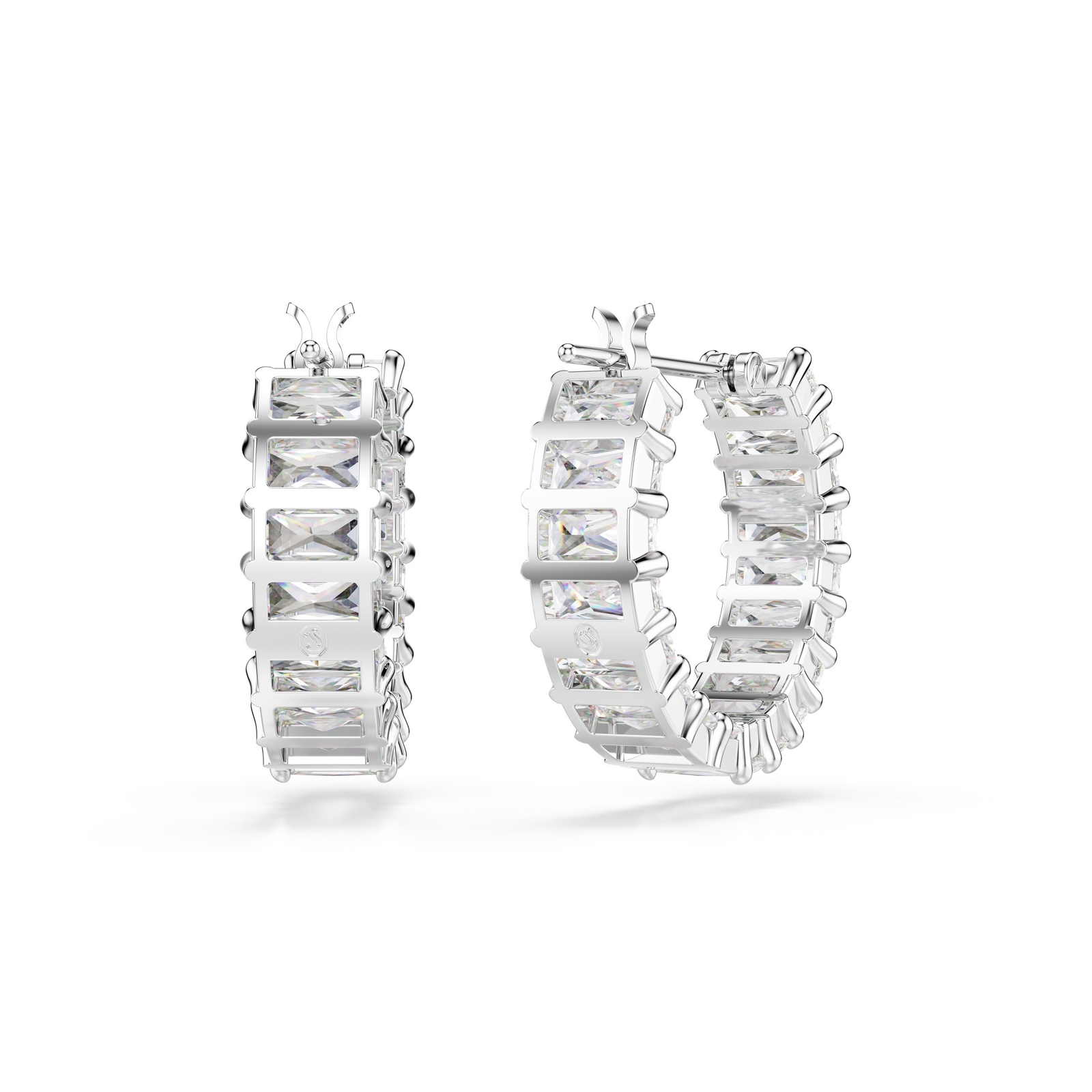 Reinvent your mini hoop style with this bright dose of Matrix light. Each rhodium plated earring is set with baguette-cut Swarovski Zirconia in prong settings, adding a halo of radiance to any outfit. Pair them with an all-around Matrix necklace for an all-over glow.