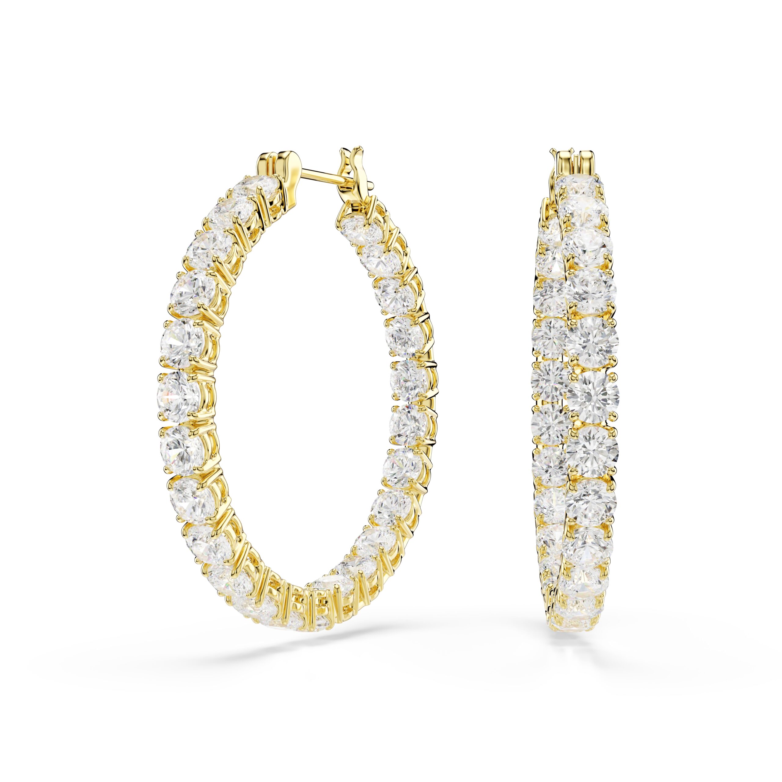 These perfectly formed Matrix hoop earrings are defined by the timeless look of round-cut crystals and gold-tone plated metal. It’s a sublime combination that is essential to any jewelry box. Reach for these hoops when circles of pure radiance are called for.