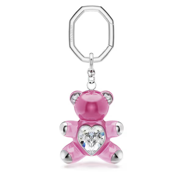 For a colorful dose of joy, this playful teddy key ring is crafted in lightweight pink resin with an octagonal link in rhodium plating. At its center, a clear crystal heart injects additional radiance and romance. Gift this key ring to someone you adore for a very special occasion.